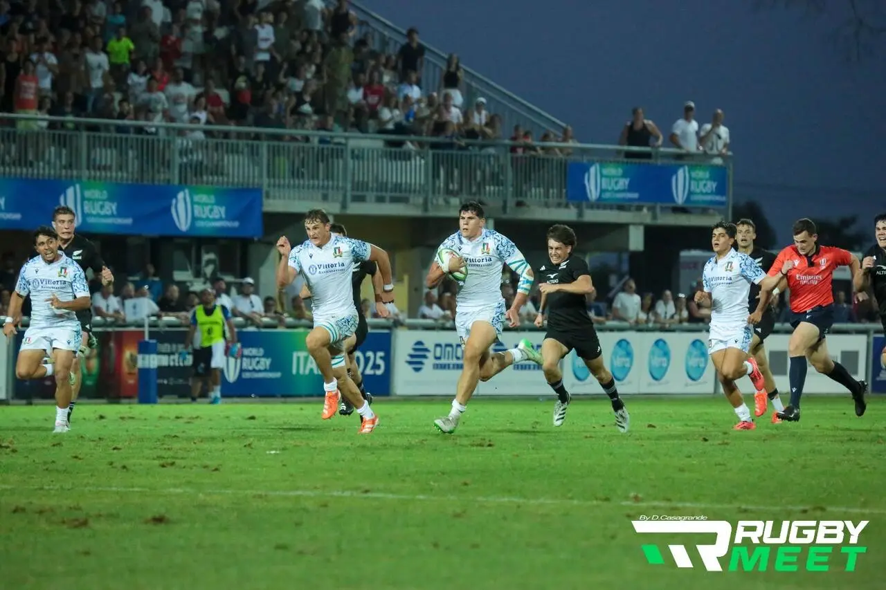 Nella cornice di uno stadio San Michele tutto esaurito, l’Italia U20 fa il suo esordio nel World Rugby U20 Championship. Si tratta della terza volta in Italia per il Mondiale di categoria (2011, 2015 e 2025). A dare l via alle danze è la spettacolare Haka dei favoritissimi “Baby Blacks”.