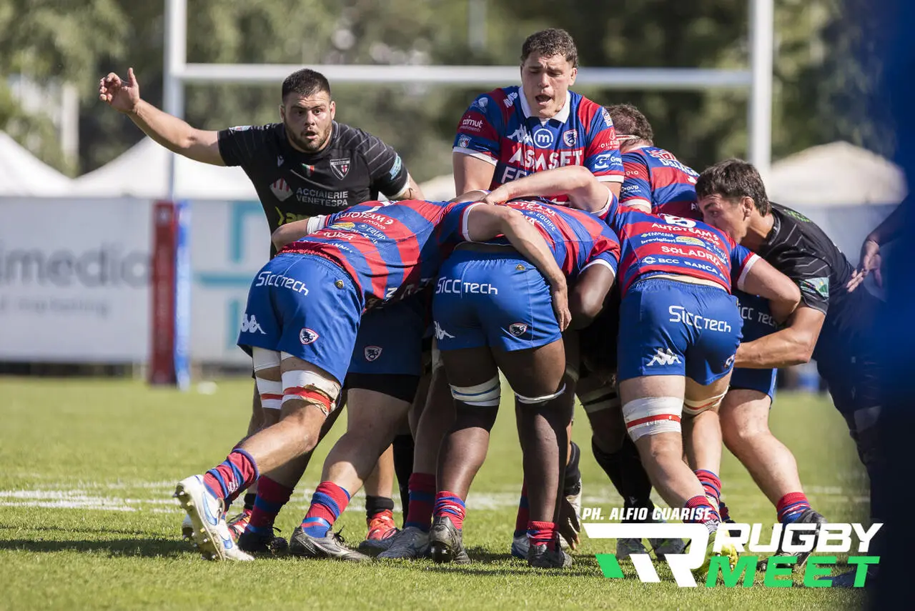 Sul finire di primo tempo arriva un pareggio rocambolesco: grubber di Juan Mostert che si inserisce in area di meta, Minozzi e Casolari si tuffano sull'ovale ma non lo toccano, arriva Mirko Belloni che schiaccia in meta per il pareggio.