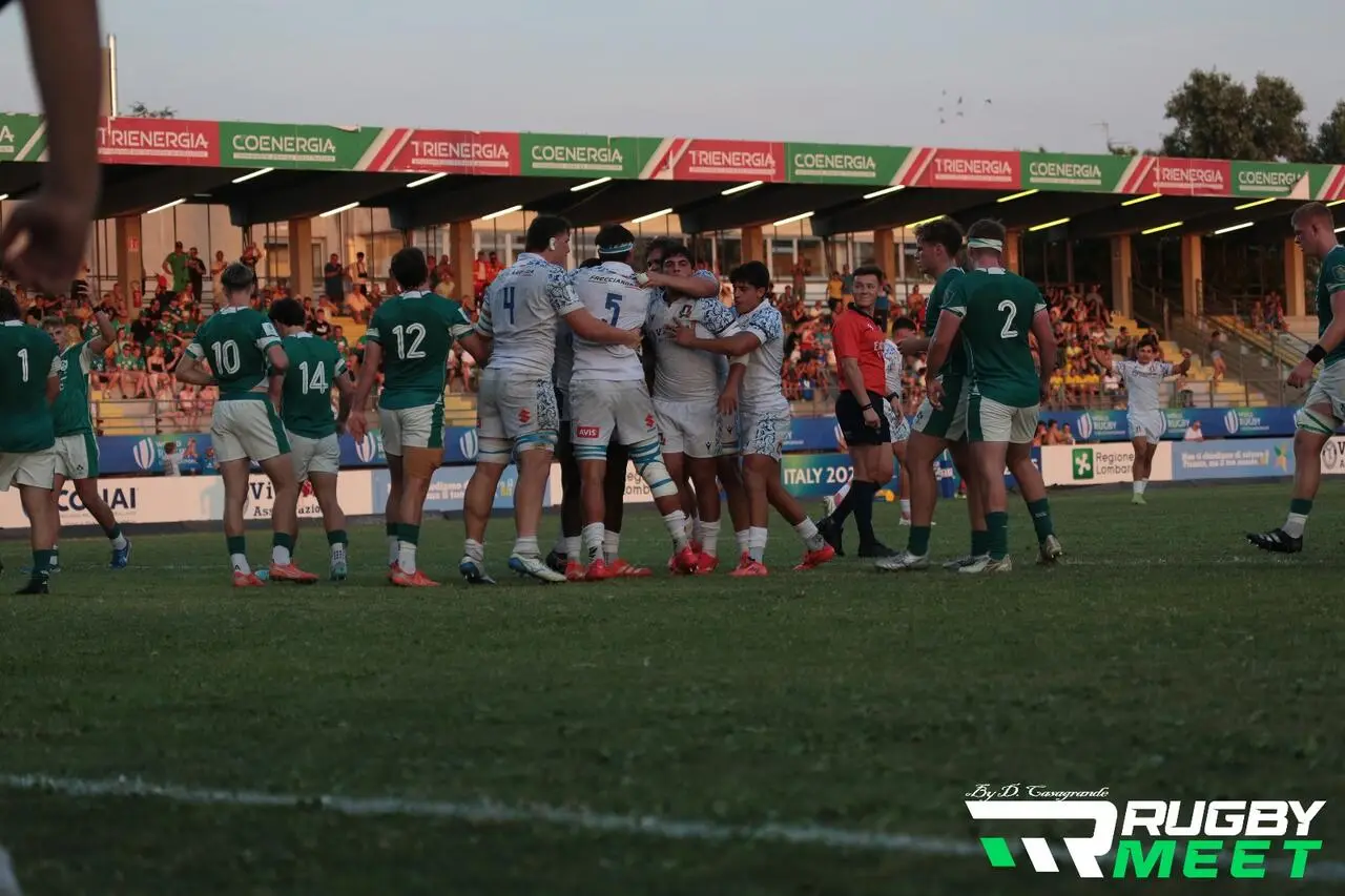 Troppi errori nel finale di gara, con l'Irlanda che riesce a guadagnare due falli nei nostri ventidue. C'è un penaltouche, serie di raccogli e vai fino alla meta di Minogue. Sam Wisniewski va per la trasformazione, gli Azzurrini salgono tutti per disturbarlo e il pallone va fuori.