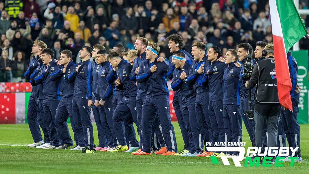 Un solo cambio nel XV titolare rispetto alla partita vinta contro l’Australia per 26-19 a Udine lo scorso sabato 8 novembre con l’inserimento in prima linea di Riccioni al posto di Ferrari. Confermata la terza linea con numero 8 Cannone L. e i flanker Zuliani e Vintcent. In panchina Odiase al posto di Izekor.