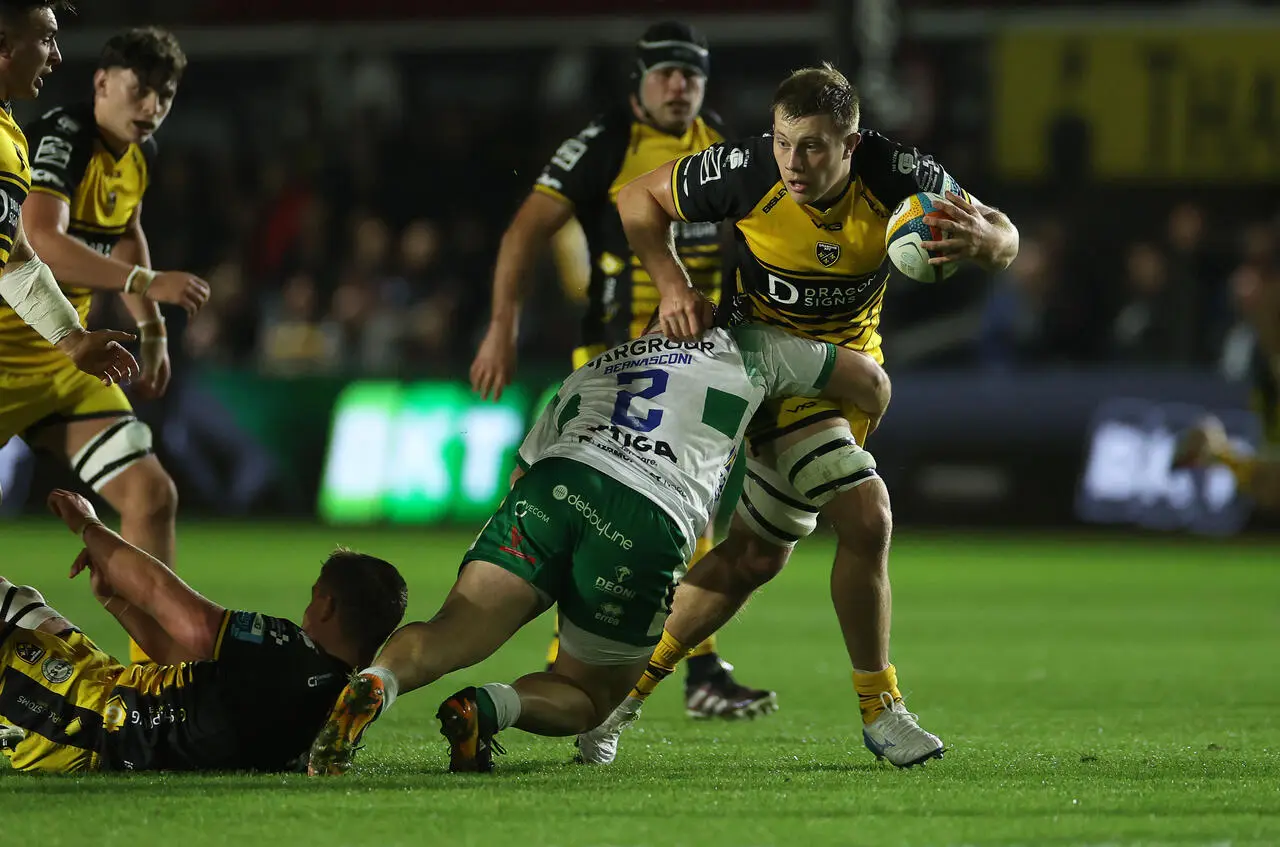 Quindici minuti di gioco e per i Leoni arriva il primo giallo: Bautista Bernasconi placca alto Rhodri Williams. L'inferiorità numerica si fa sentire. Al 27' intercetto da parte di Joe Westwood che brucia in corsa Louis Lynagh e vola in meta: 7 a 0. Al 38' sorpasso Benetton grazie ad una meta da maul di Bernasconi, rientrato dalla sanzione: 7 a 10.