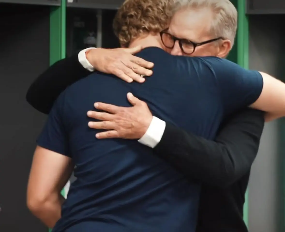 “Come prima cosa vi faccio i miei complimenti per la partita. Sono emozionato questa sera perchè trentatre anni fa ero seduto proprio qui, in questo spogliatoio, avevamo vinto il campionato… Ma non solo, è una cosa molto importante per me perché quel giorno incontrai mia moglie…. E il risultato è lui – indicando il figlio Louis –".